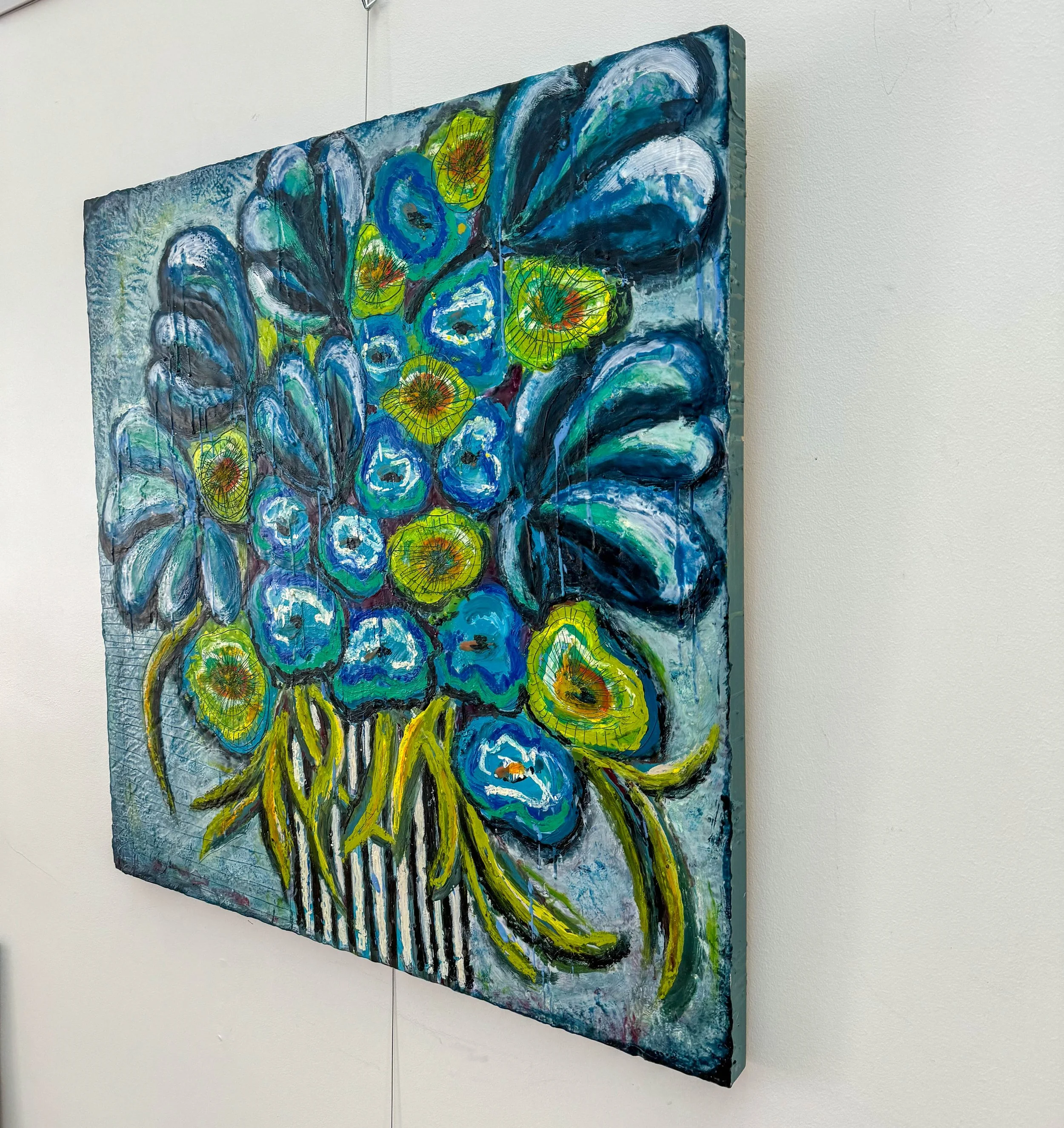 AVAILABLE ART & SERVICES › FLORAL BLUES Image 1 of 5 Image 2 of 5 Image 3 of 5 Image 4 of 5 Image 5 of 5 FLORAL BLUES $3,200.00 36 x 36 x 2 inchesEncaustic on Wood Panel Purchase Added! 36 x 36 x 2 inchesEncaustic on Wood Panel Reviews Reviewer Name Review Date Star Rating Description Posted on Etsy Product Show More